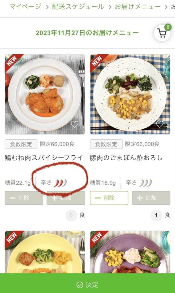 他社だと、「季節の8食セットA」みたいな形で、決まったセット内容から選ぶものもあるのですが、ナッシュは全メニューの中から自由に組み合わせ可能です。