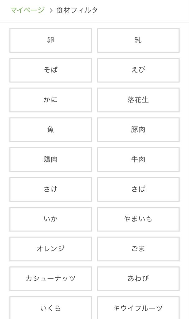 - 食材フィルターでアレルギー対応