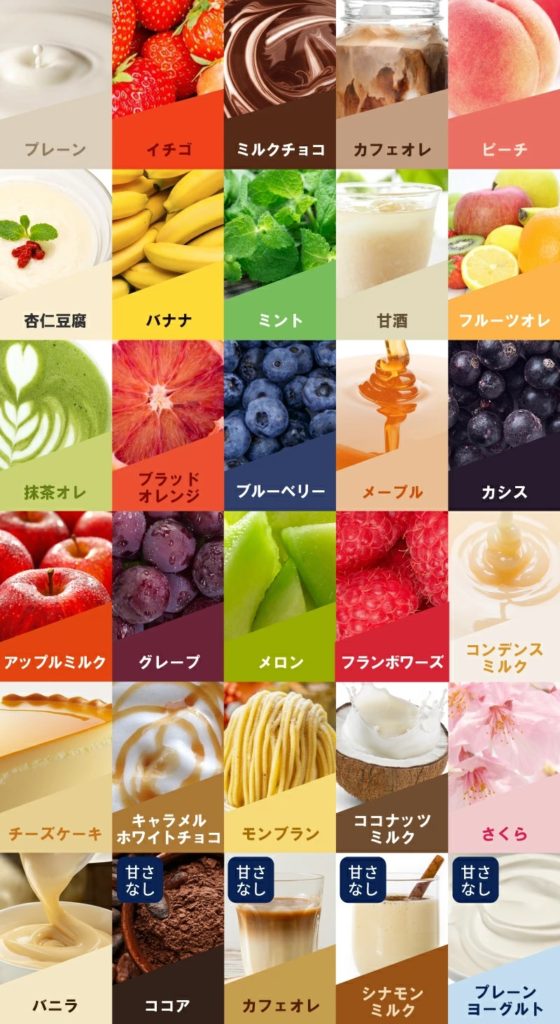 その他、杏仁豆腐やチーズケーキなど、沢山のフレーバーがあるので、見てみてね!