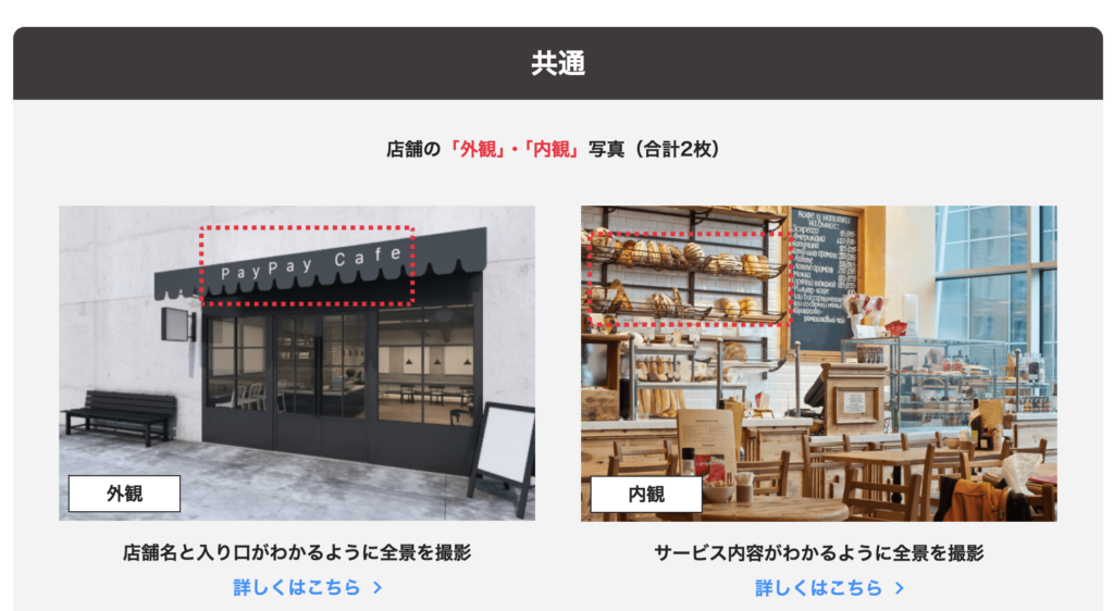 店舗内観、外観写真はこんな感じで問題ありませんでした。