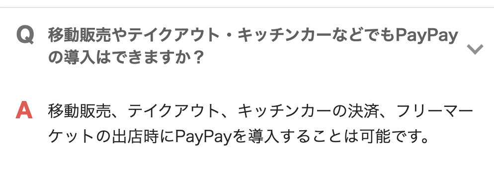 Q&Aを見てみると、PayPayは移動販売やフリーマーケットなどでも